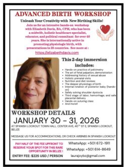 2. Advanced Midwifery Practice workshop, 2 days immersion, Spanish Lookout, Belize, 1/30–1/31, 2026